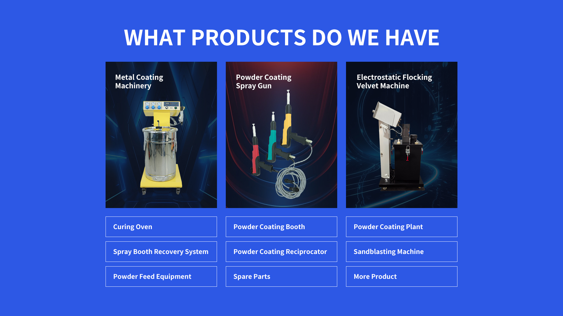 An Industrial Powder Coating Spraying Gun is a precision tool designed to apply electrostatic powder coatings evenly onto metal or non-metal surfaces. Key components include a powder hopper, electrostatic generator (30–100 kV), nozzle, trigger mechanism, grounding cable, and airflow regulator.